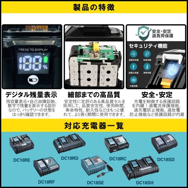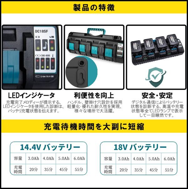 - ★送料無料・30日間保証付き★マキタ18v 互換 4口充電器DC18SF+デジタル残量表示バッテリー4個セット