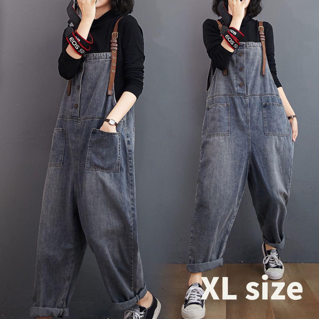 > H48★デニムサロペット オーバーオール オールインワン つなぎ ゆったり カジュアル おしゃれ 春 夏 秋 冬 着回し レディース 韓国 XL