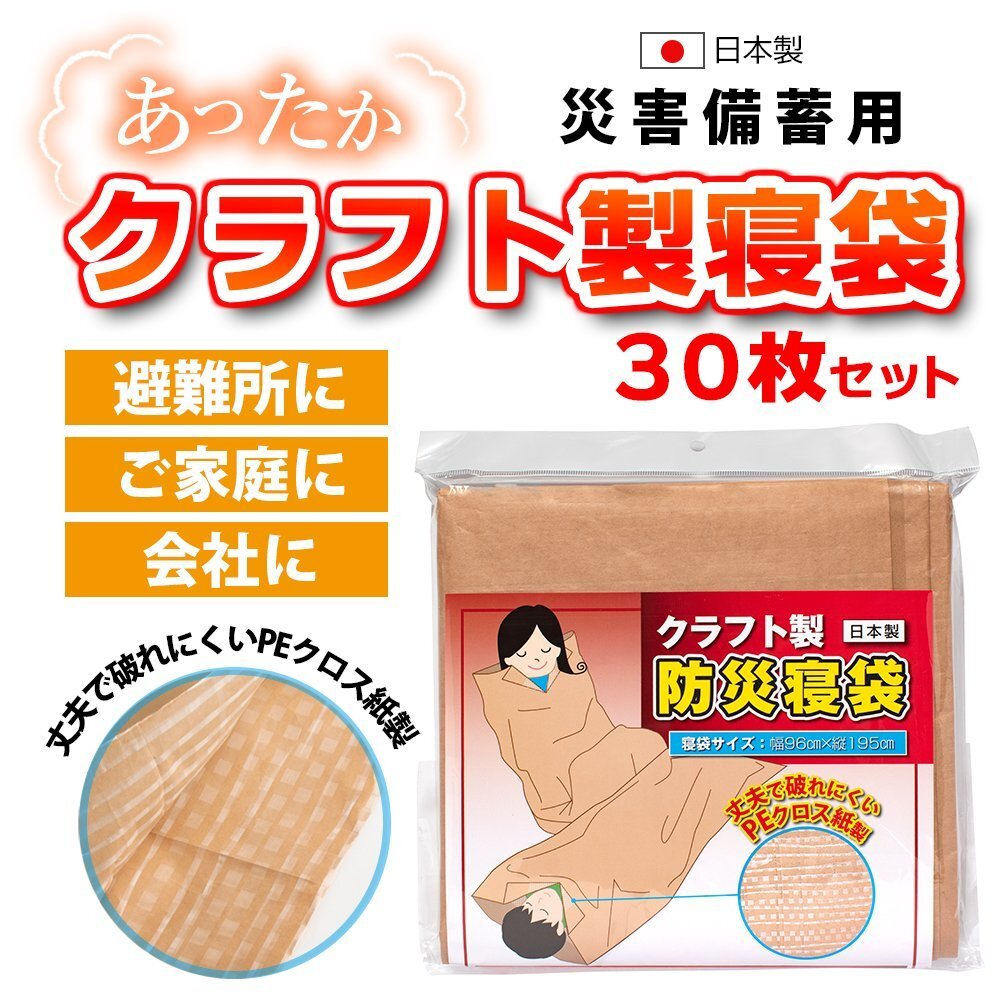 - 送料無料 《 30枚セット 》防災寝袋 クラフト製(PEクロス) (代引不可)※個人配送不可 / 防災用品 / 非常用 / 災害 / 緊急事態 / 避難所