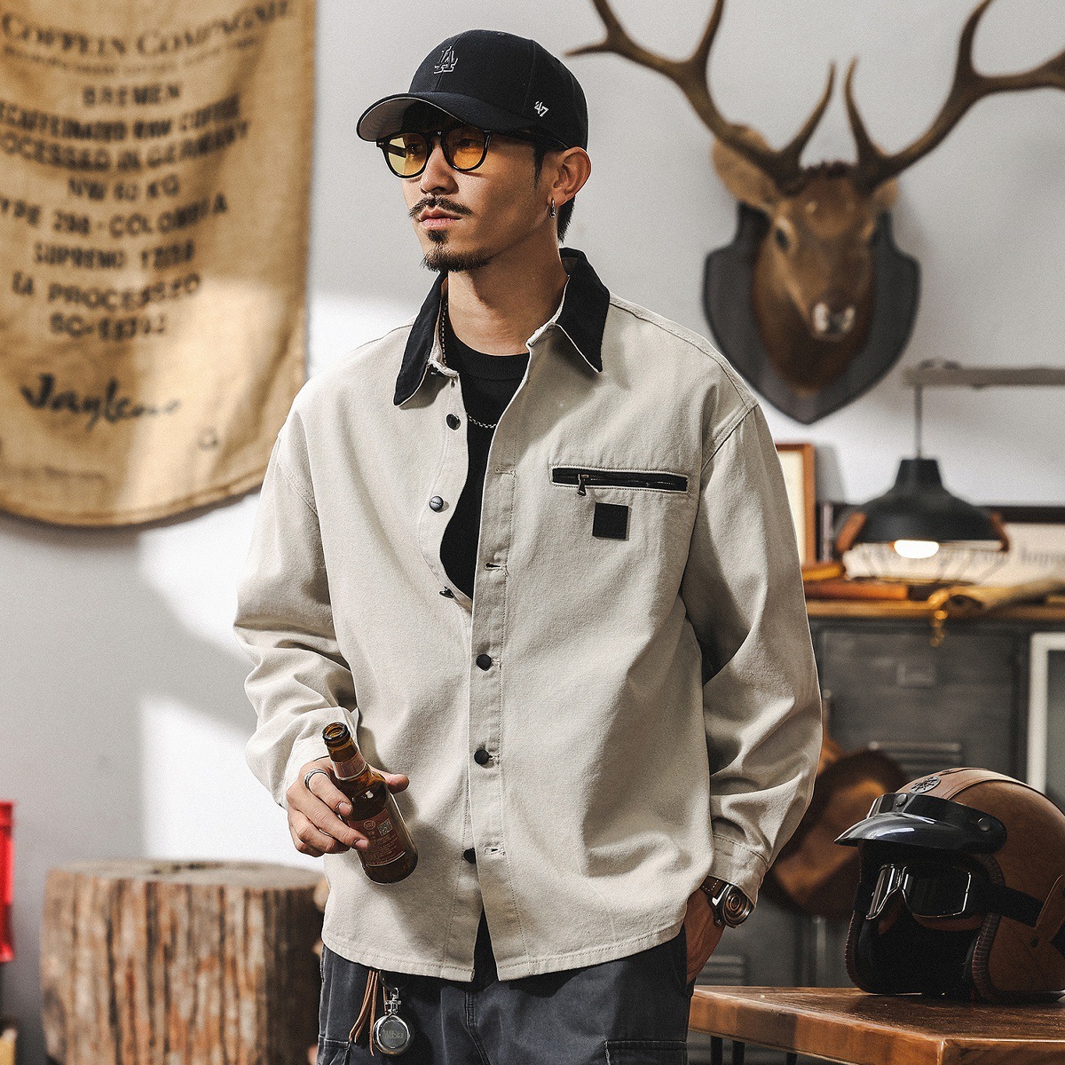 > ワークシャツ カーゴシャツ メンズ・新品 長袖シャツ シャツジャケット ヴィンテージ トップス ブルゾン【1702】ベージュ L