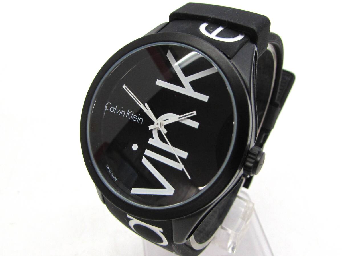 > 極美品 動作品 Calvin Klein カルバン・クライン K5E 51T 腕時計 クォーツ ロゴ ブラック ラバーベルト