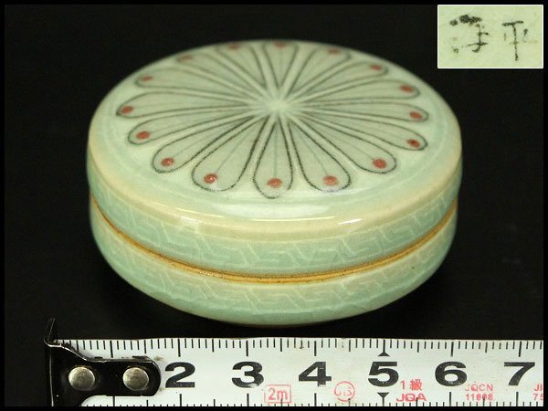 - 【銀閣】香道具 高麗青磁 香合 在銘 旧家蔵出 送料無料(LC61)