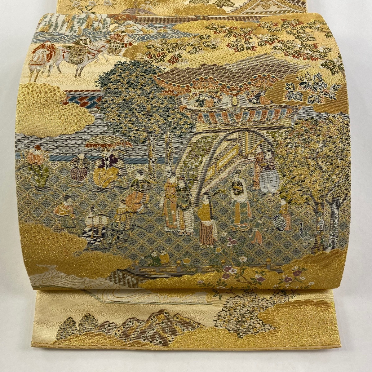 - 【美品】 袋帯 名品 人物 風景 金糸 箔 金色 六通 正絹 【中古】