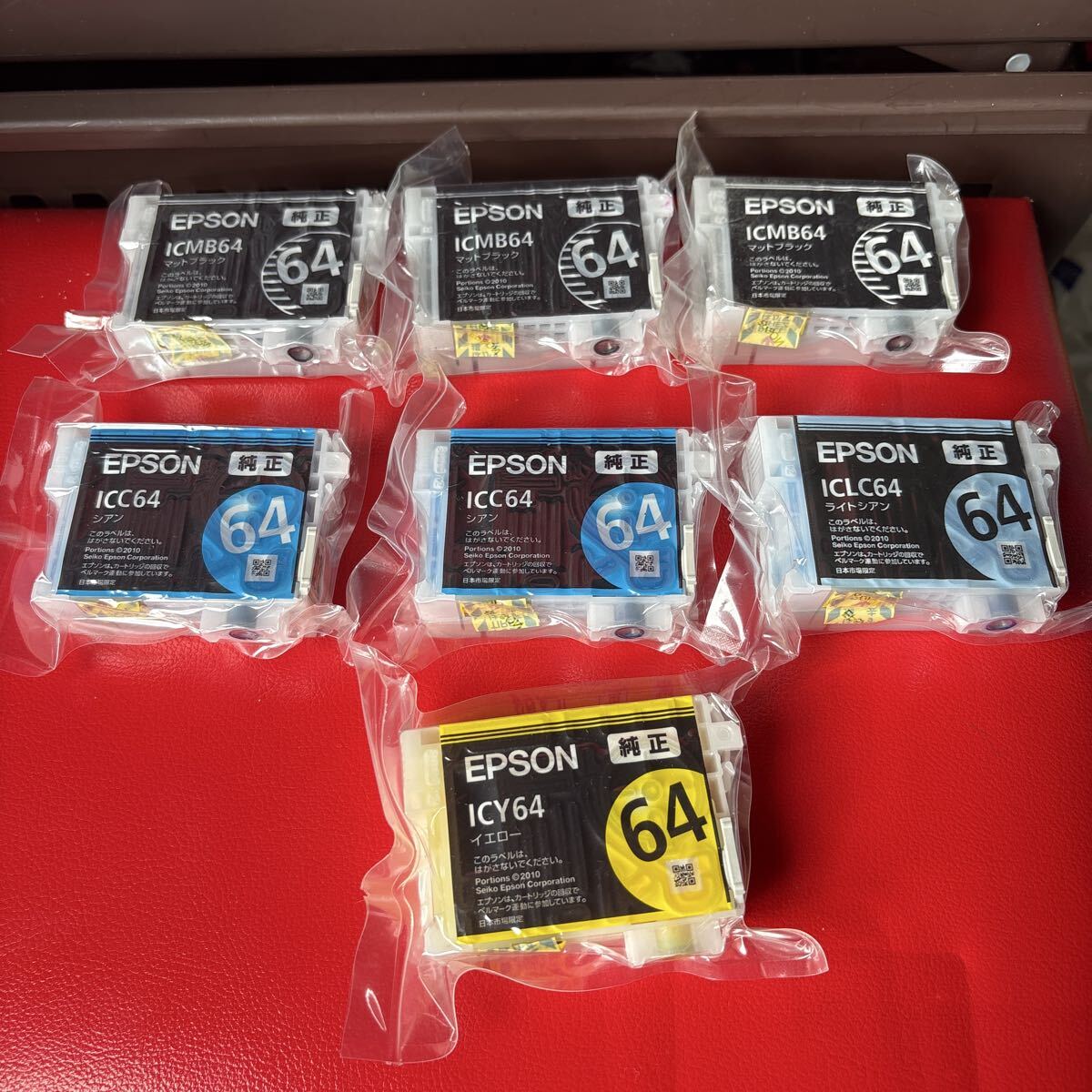 > EPSON/エプソン 純正 インク 64 4色 7個セット 期限不明 未開封未使用品 未チェックのジャンク扱い MB/C/LC/Y マットブラック