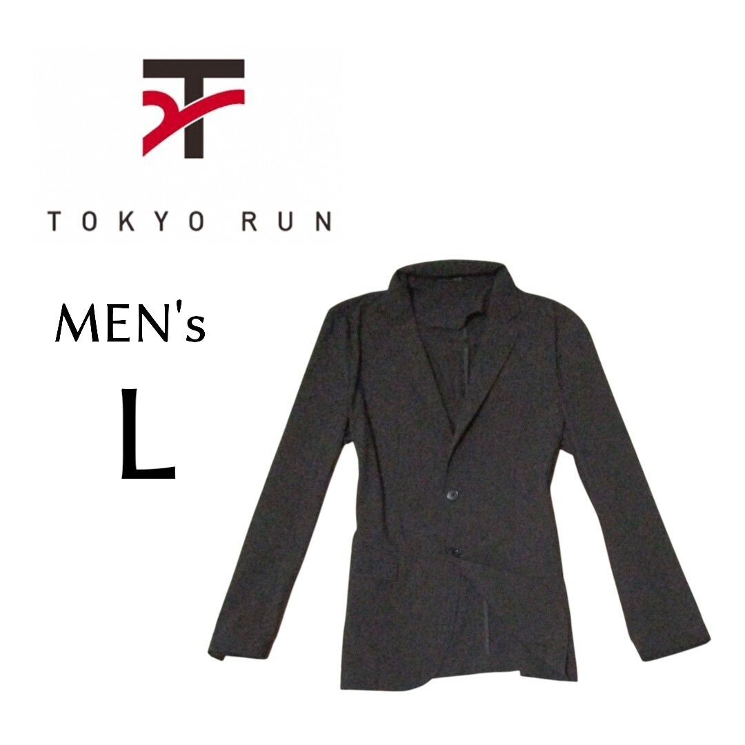 - 送料込み メンズLサイズ TOKYO RUN ナイロン ストレッチありテーラードジャケット 黒色