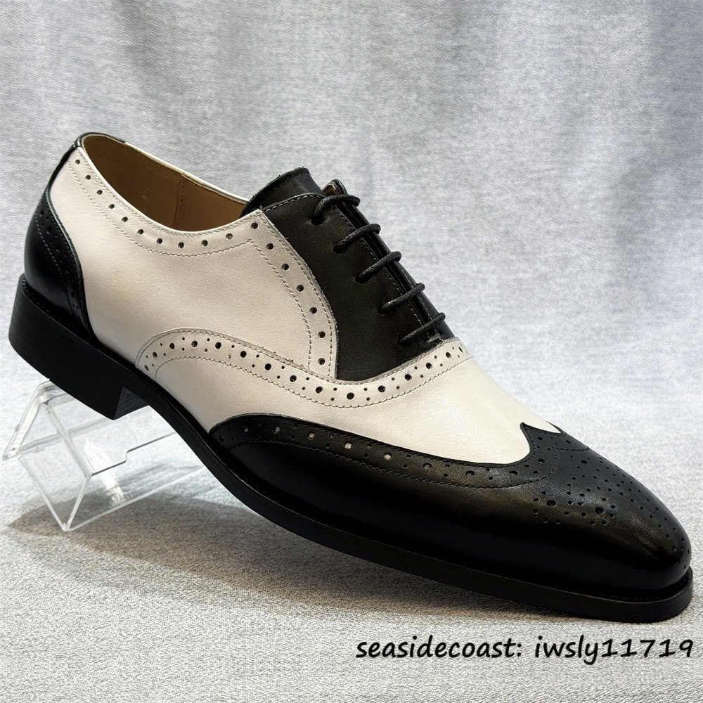 > 定価10万◆最高級 ビジネスシューズ メンズ 切替 本革 レザーシューズ 職人手作り 紳士靴 革靴 上質牛革 宴会 イギリス風 結婚式 24.5cm