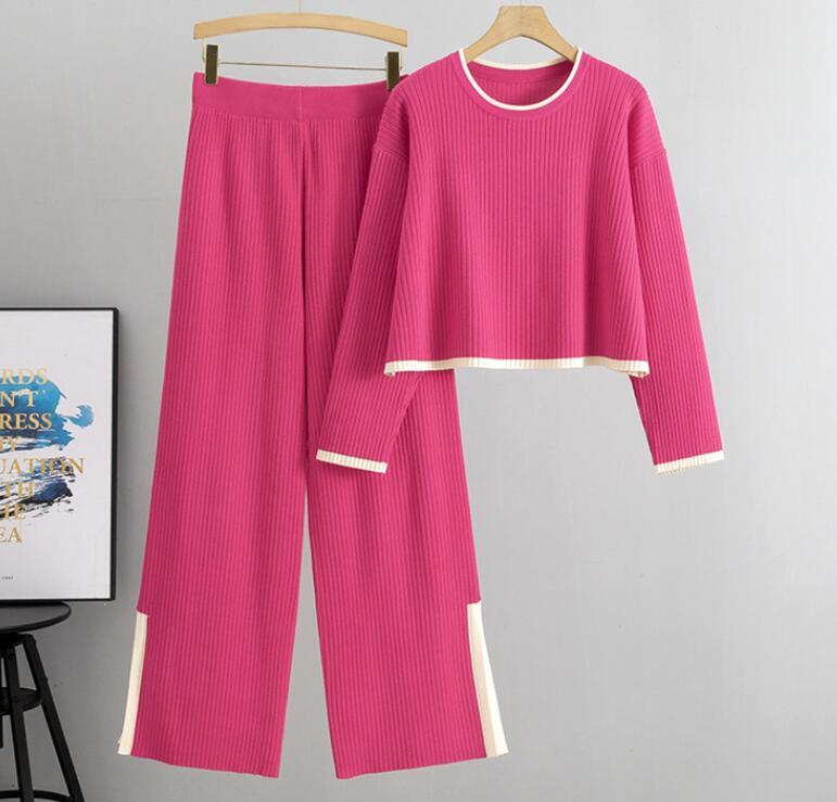 - M1015 パンツスーツレディース● 着心地抜群 20代30代40代 ● ニット素材 秋冬 上下セット 綺麗 ローズ
