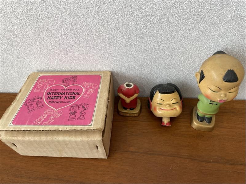 - #6659 台湾首振りドール2体 民芸品 一部破損品