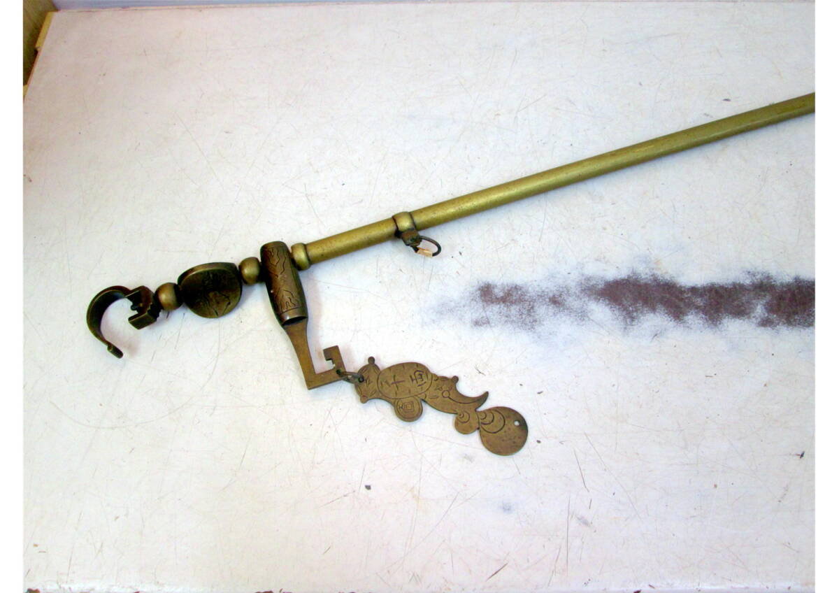 - 《510011》自在鉤 / 真鍮? 千両 長さ約145cm~ 囲炉裏 かまど 古道具 レトロ アンティーク