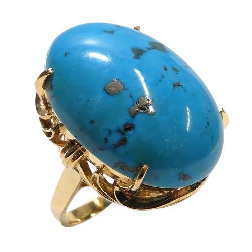 - 【K18】 美品 大粒 ターコイズ リング 14号 トルコ石 オーバル 楕円 イエローゴールド 18金 指輪 turquoise yellow gold ring◇J