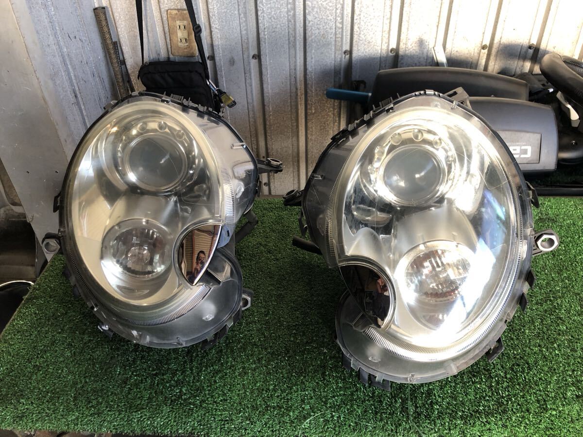 > BMW MINI クーパーS クラブマン MM16 ヘッド ライト ランプ 左右セット HID (LED交換) 点灯確認 黄ばみ、クリアハゲ 薄い劣化ヒビ