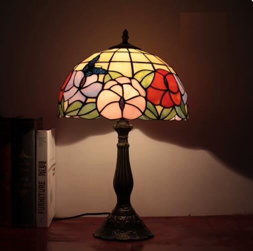 - 新入荷人気推薦ステンドランプ 蝶 花柄 ステンドグラス レトロな雰囲気 ティファニー技法 テーブルスタンド 照明 室内装飾