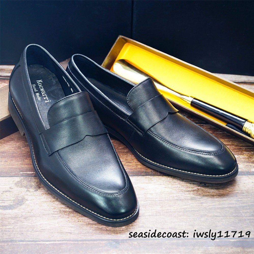 - 超希少★ビジネスシューズ 新品 ローファー 牛革 革靴 本革レザーシューズ 職人手作り 最高級 レトロ スリッポン メンズ ブラック 27.0cm