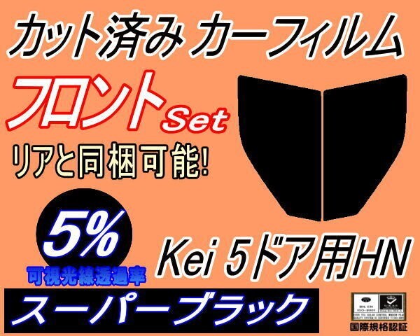 - カーフィルム スーパーブラック カット済み フロントセット Kei 5ドア HN (s) HN11S HN12S HN21S HN22S 5ドア用 ガラスフィルム