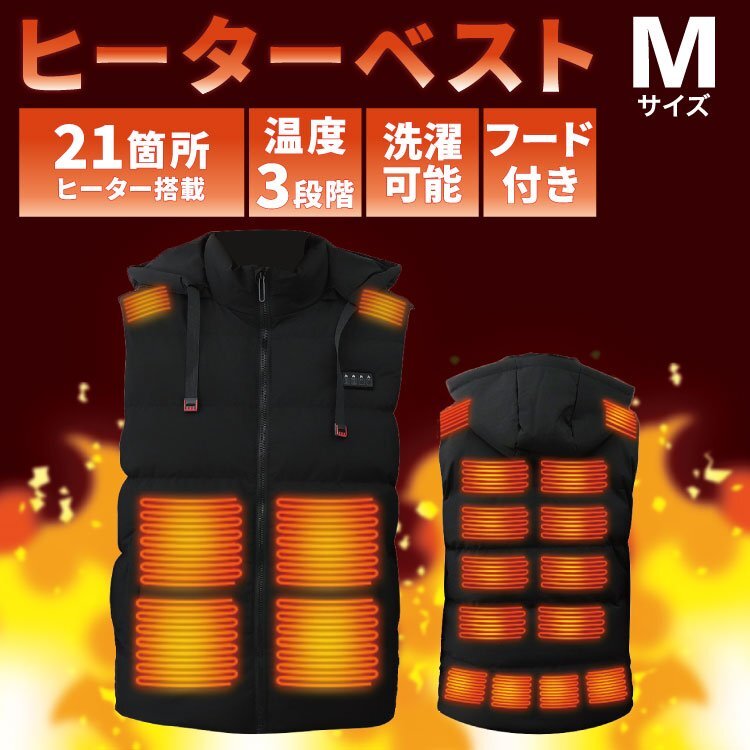 - 電熱ベスト ヒーターベスト バッテリー対応 速暖 電熱ジャケット 21エリア発熱 フード付 3段階温度調整 軽量 洗える 防寒着 ヒートベスト