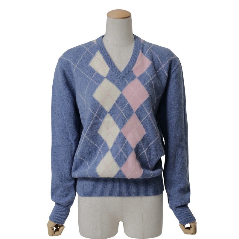 - TI8821□ライル&スコット/Lyle & Scott アーガイル柄 ウール Vネック セーター ニットプルオーバー サイズ16 ブルー×ホワイト×ピンク系