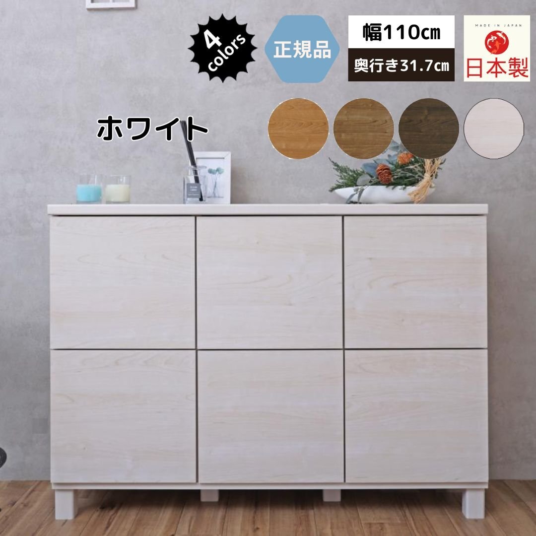 - キャビネット サイドボード 木製 3列 薄型 木目 奥行32cm 高さ78.7cm 扉付き 扉 おしゃれ 収納 棚 日本製 NC-8011CB-WH ホワイト