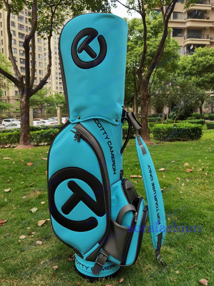- 美品 スコッティ キャメロン タイトリスト ゴルフバッグ キャディバッグ 9型 約5kg 6分割 合成皮革 ライトブルー 黒サークルT