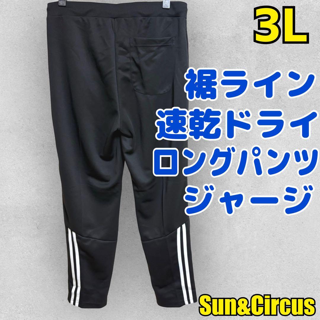 > メンズ大きいサイズ3L 裾ライン ジャージ素材 ロングパンツ 新品 吸水速乾 黒