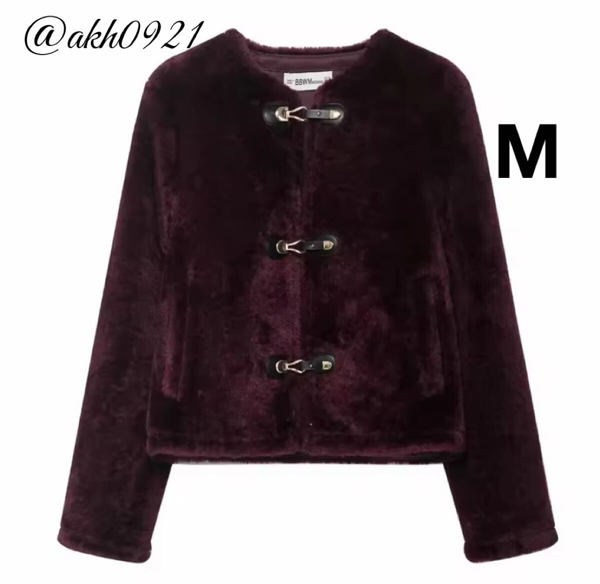 - 新品未使用★2025 秋新作★vintage ヴィンテージ レトロ ボルドー ファー ダッフルコート アウター Mサイズ レディース★ZARA 好きな方に