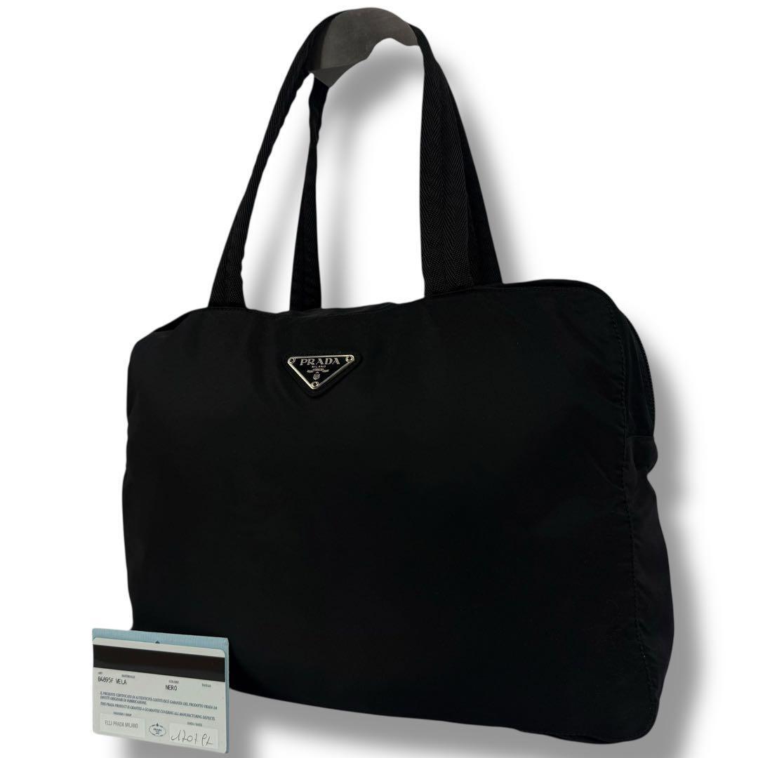 > 【Gカード付き/良品】PRADA プラダ 三角ロゴ ミニボストン トート ハンド バッグ 肩掛け カバン ナイロン ブラック 黒 白タグ B4895F