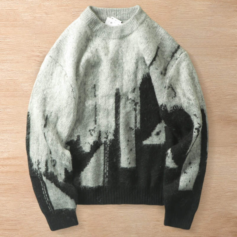 - Y6367-XL グレー 新品 ウール混 モヘア プルオーバーニット クルーネック 柔らか 暖かさ 着心地良い 秋冬 セーター メンズ トップス