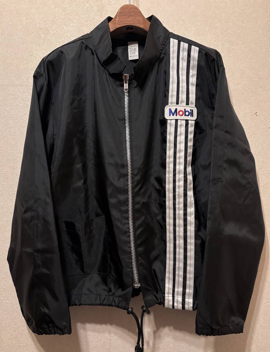 > デッドストック?美品USA製80sビンテージMobilレーシングジャケットLアルミジップ黒ナイロン白ライン米国製US製80年代1980sオイル企業