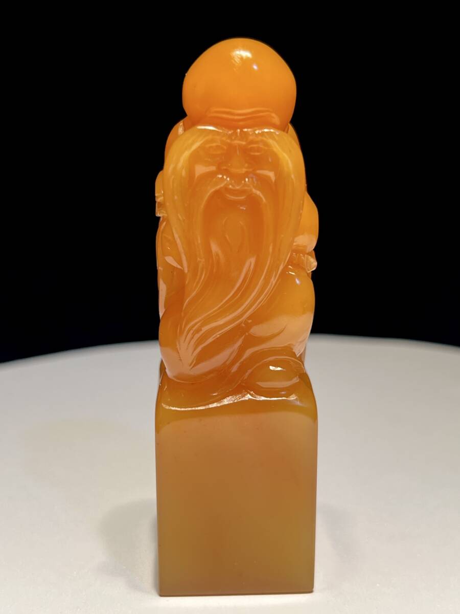 > ◆珍蔵◆中国古美術 清時代 古寿山石 田黄石彫り老壽星印章 精品 細密細工造 置物 擺件 古賞物 骨董品 時代物 A68