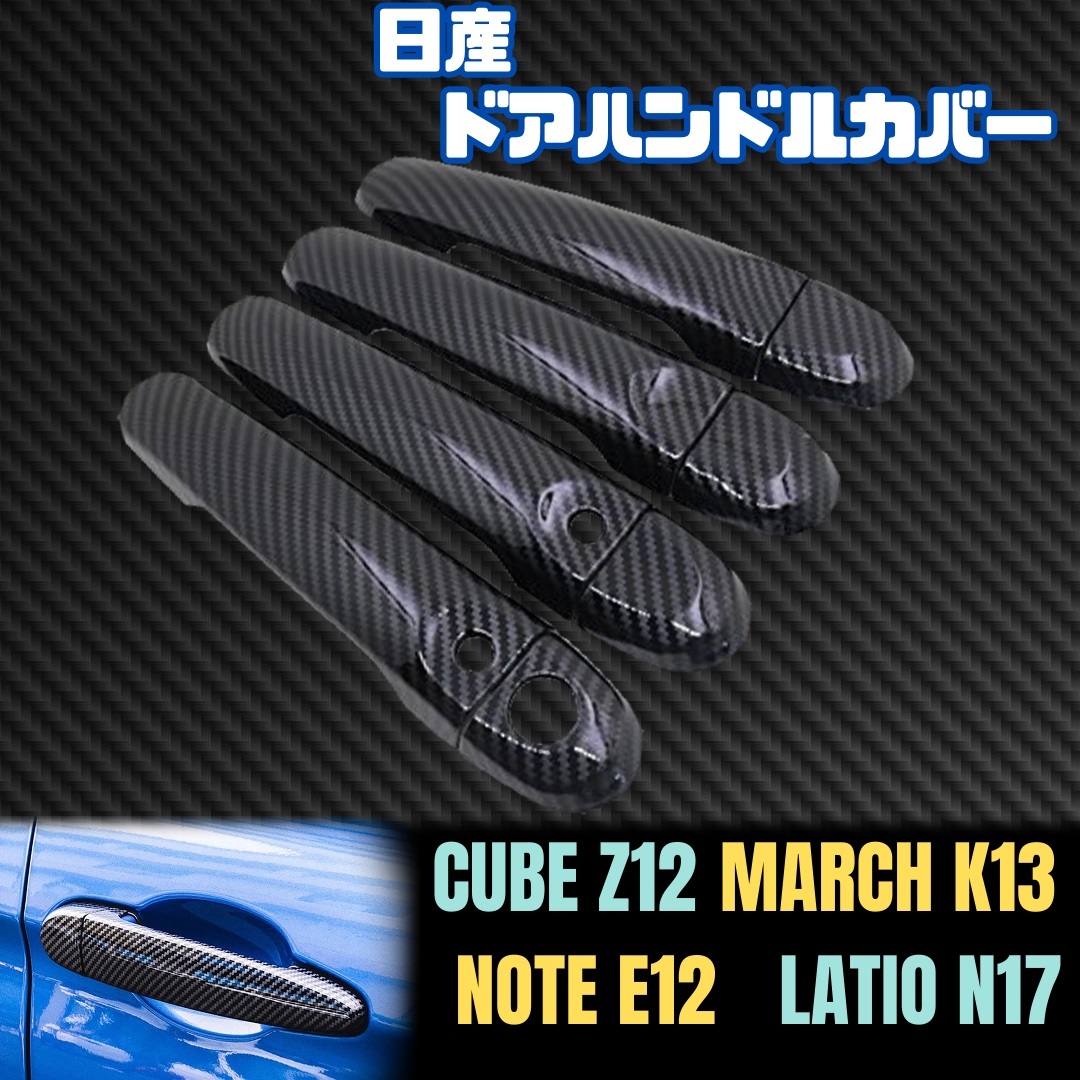 > 日産 ドア ノブ カバー ハンドル キューブ Z12 ZN12 マーチ K13 ノート E12 ラティオ N17 NISSAN カーボン ブラック