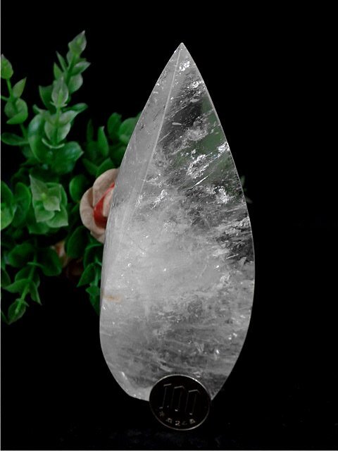 【クリスタルクォーツ(白水晶)】 無色透明の水晶。世界中で最も知られ、その効果は万能とされ、水晶といわると一般にイメージするベーシックな水晶です。その透きとおった姿を見ているだけで、すがすがしい気持ちにさせてくれそうです。 あらゆる水晶の中でも基本となりますので、そのパワーは強力かつオールマイティとされています。