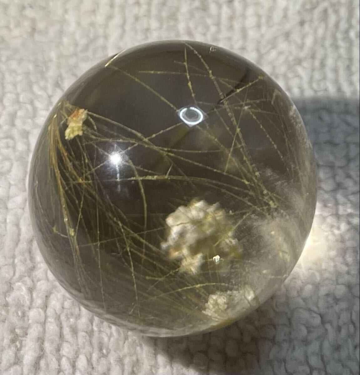 - タイチンルチルクォーツ 丸玉 045 水晶 クリスタル 天然石 魔除 財運 金運 パワーストーン 幸運 風水晶 ガーデンクォーツ共生