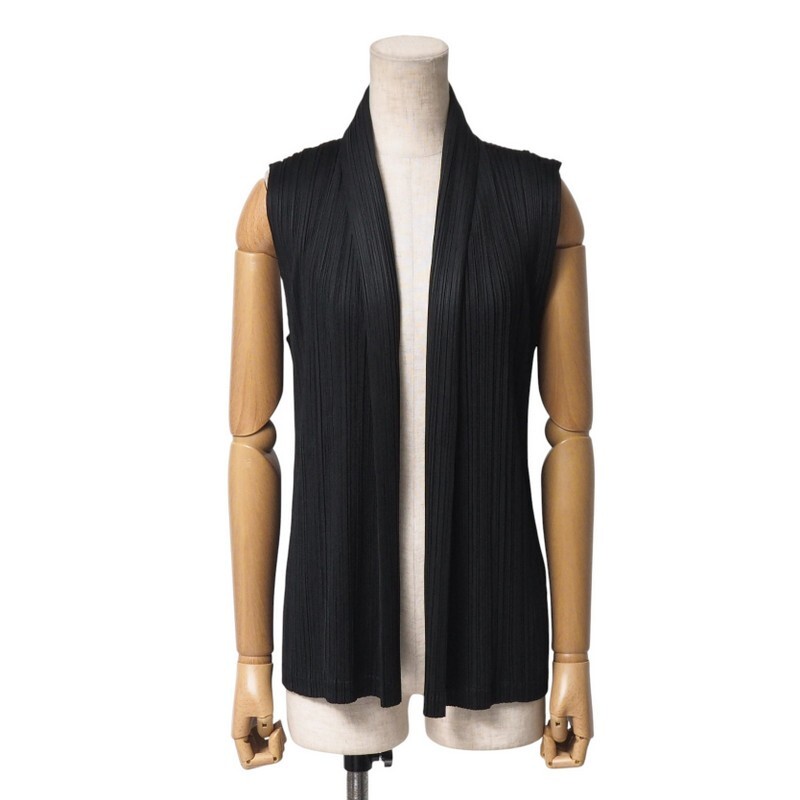 - TJ5306★PLEATS PLEASE プリーツプリーズ イッセイミヤケ プリーツ加工 フロントオープン ジレ ベスト ブラック サイズ4 PP21-JE163