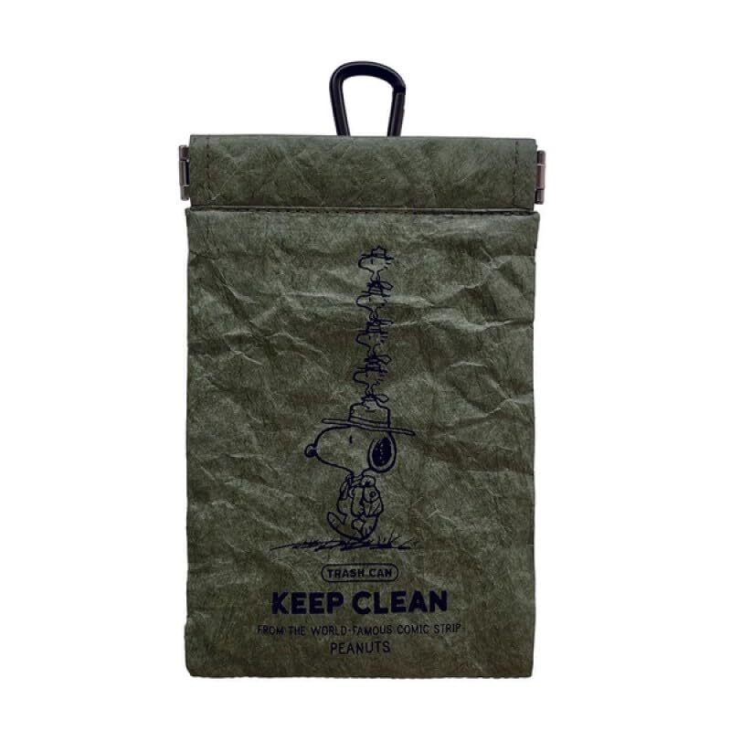 - ヘミングス 携帯ゴミ箱 POY(ポーイ) PEANUTS 約10×16cm カラビナ&側面ポケット付き GREEN 44
