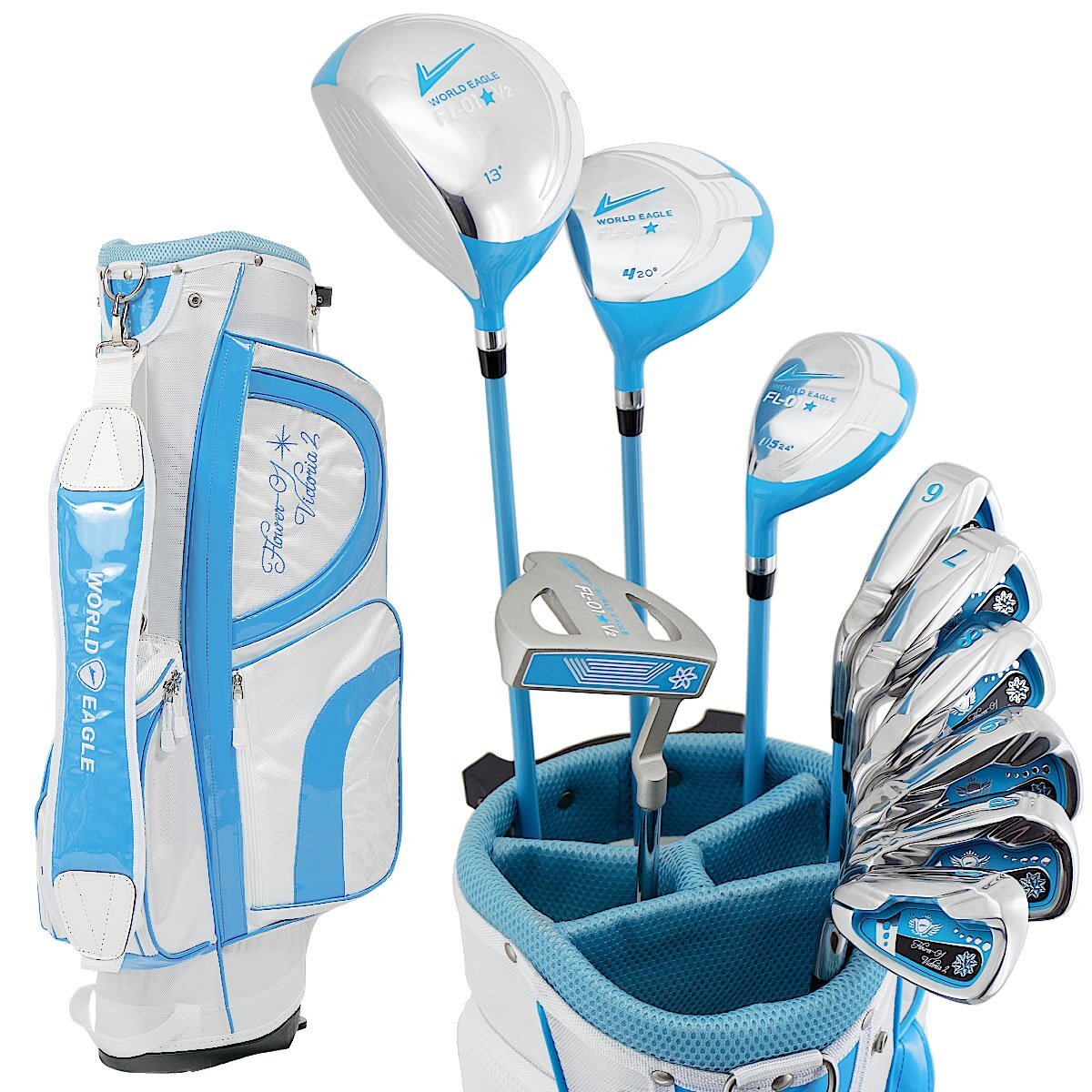 > FL-01★V2 レディースゴルフクラブセット スタンド式軽量キャディバッグ付 左利き用 アクアブルー[34265]