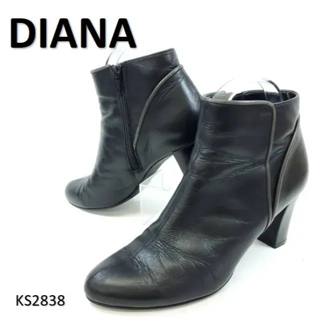 > ダイアナ 美品 ショートブーツ サイドジップ ポインテッドトゥ レザー 24cm