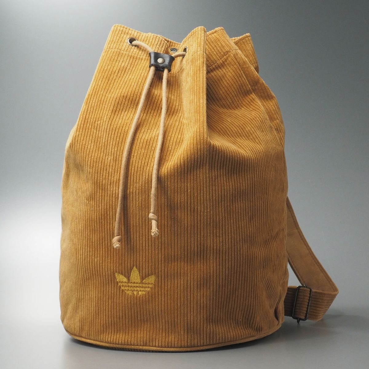 > MI1993◎80s 90s VINTAGE adidas アディダス 巾着 ワンショルダーバッグ バケツバッグ 肩掛け コーデュロイ 丸底 トレフォイル刺繍 鞄