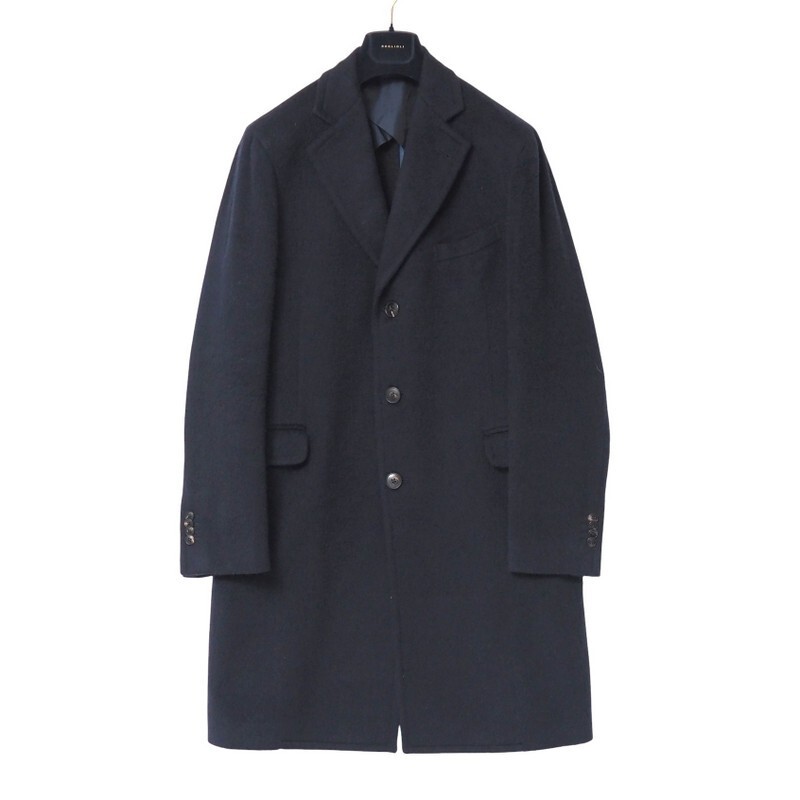 - MH6347▼ボリオリ BOGLIOLI*メンズ50 K JACKET C3401P チェスターコート ロングコート ネイビー系 ハンガー付き