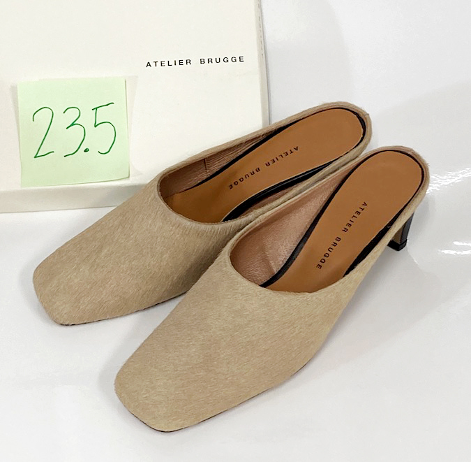 - 新品/23.5/日本製/アトリエブルージュ) ハラコレザー ミュール/ベージュ(管6601)