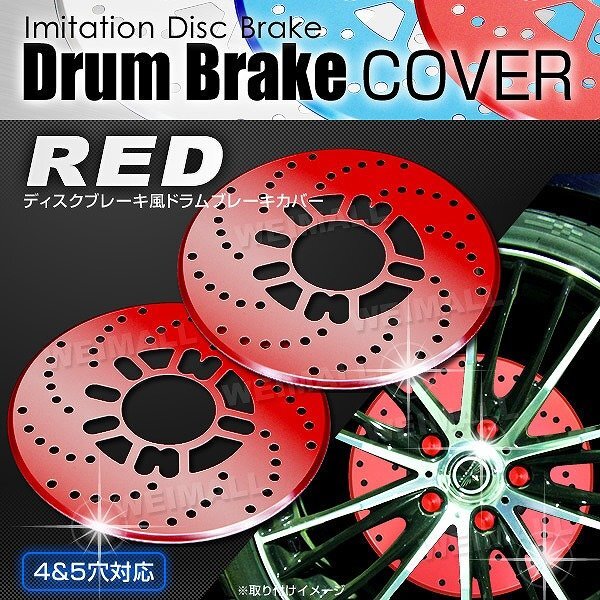 - ディスクブレーキ風 汎用カバー ダミーディスクブレーキカバードラムブレーキ ディスクブレーキカバー 4穴 5穴 2枚セット 赤