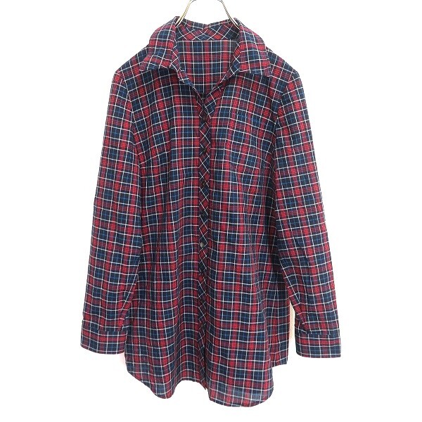 - #a レリアン Leilian シャツ ブラウス 9号 赤 紺 マルチ チェック 長袖 スキッパーカラー 日本製 レディース [963049] k01