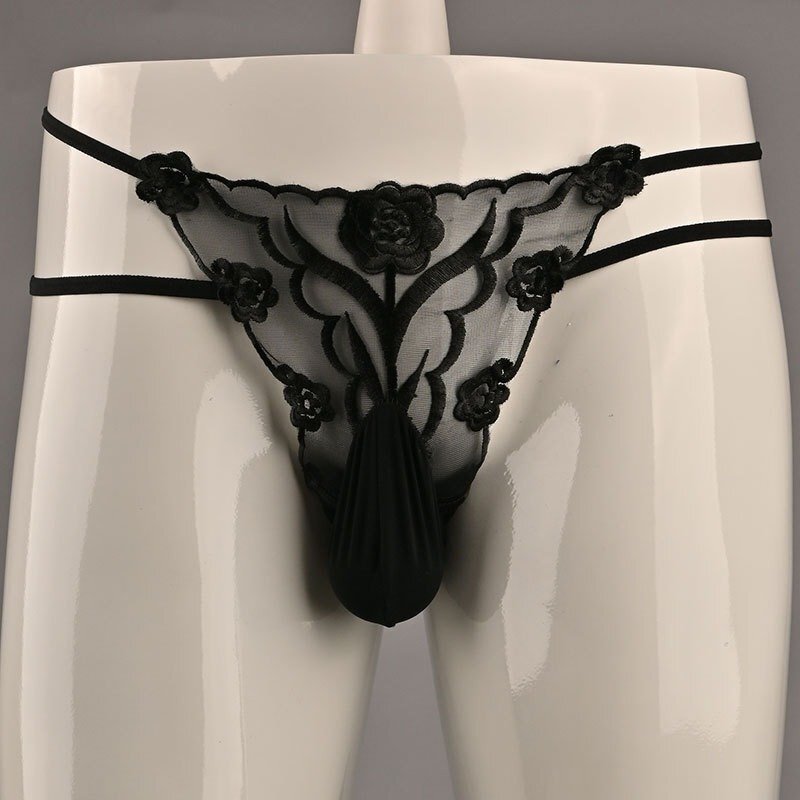- 新作 大胆 Tバック Gストリング ブラック メンズ下着 花柄刺繍 セクシー 魅惑 GAY 超薄 ショーツ パンツ エロ