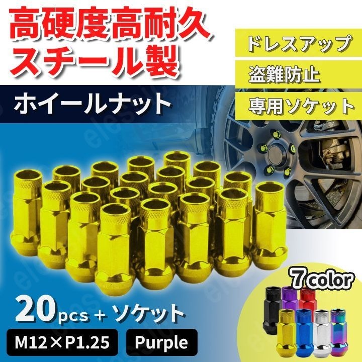 > ホイールナット 20個 黄色 イエロー M12×P1.25 日産 NV350 キャラバン 貫通 スチール 17HEX 48mm 6穴 ロング カスタムナット 盗難防止