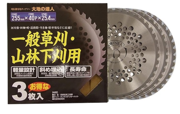 高芝ギムネ 3枚入 外径255mmx刃数40Px内径25.4mm 大地の達人 刈払機専用チップソー