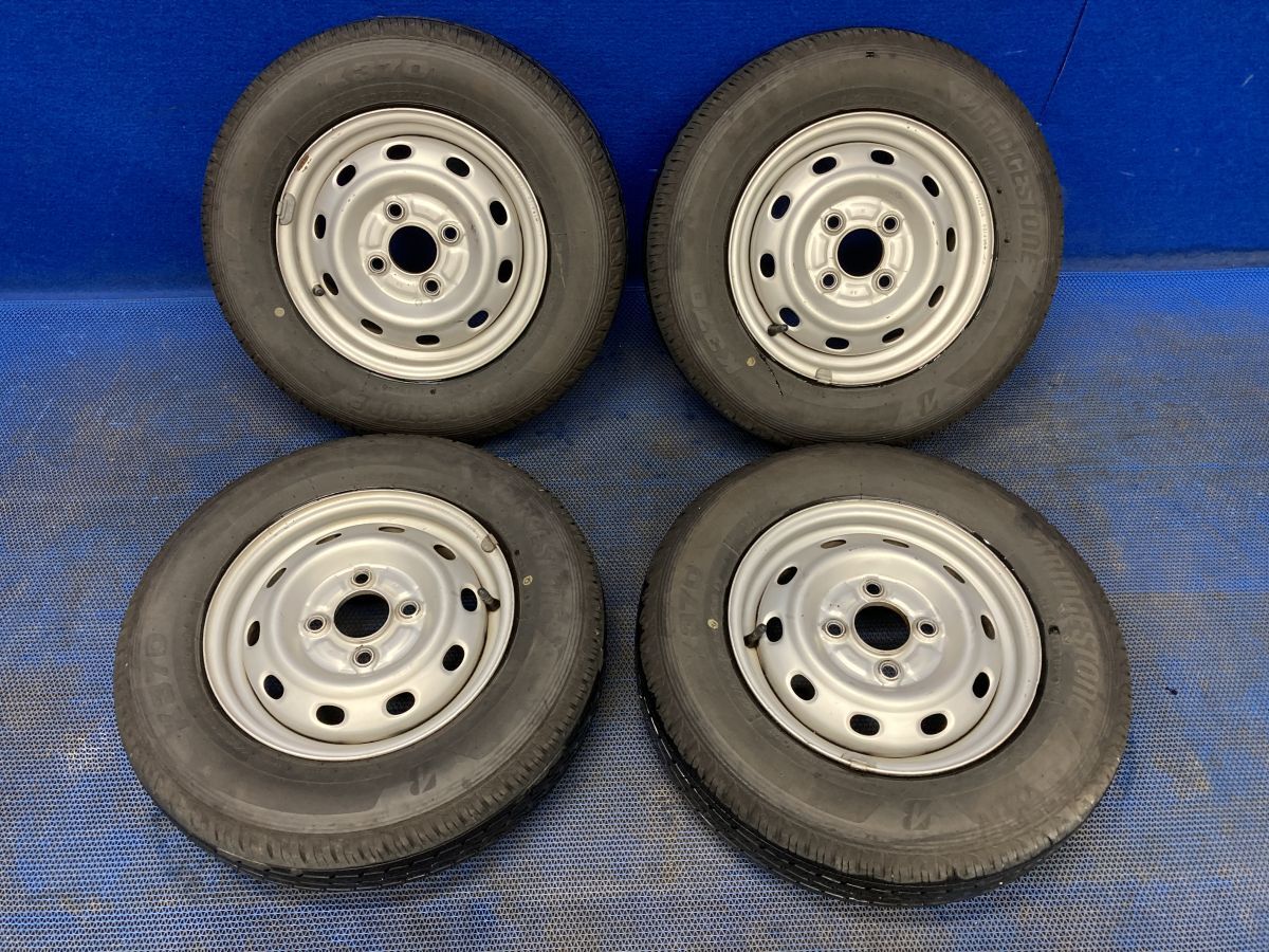 > 24年製タイヤ付★ スバル 純正 鉄チン スチール ホイール 4本セット 12インチ 4.0J +38 PCD100 4穴 4H 145/80R12 サンバー TV1 TV2 TW1 TW2