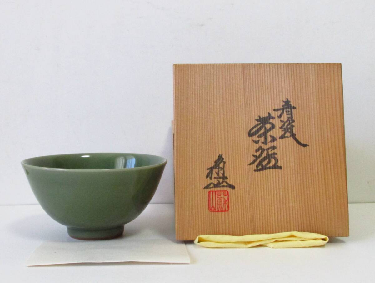 - ○清雅○ 三代諏訪蘇山 青瓷 茶碗 共箱