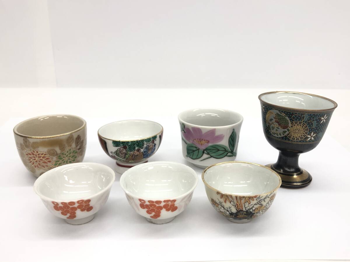 - 九谷焼 アンティーク 骨董品含む お猪口 猪口 おちょこ 杯 盃 ぐいみ 九谷松月/九谷陶香/九谷旭/美濃焼 幸泉窯 青粒鉄線/7点おまとめ