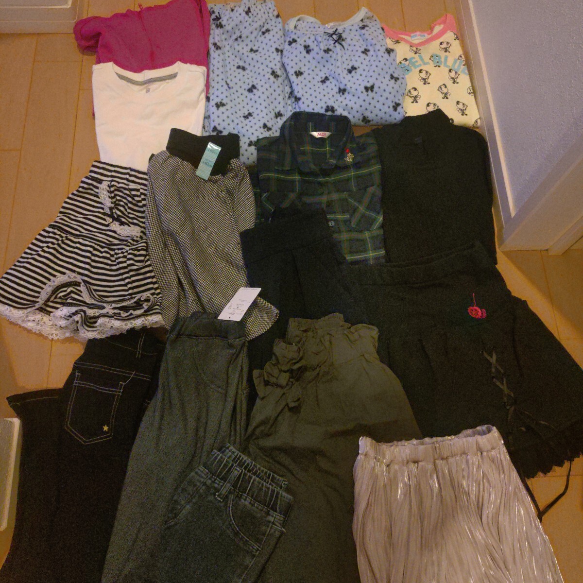 - ⑤女の子140cm洋服セット スカート裏起毛デニムパジャママザウェイズユニクロALGYグローバルワークパーカーワイドパンツ 子供服ロンT