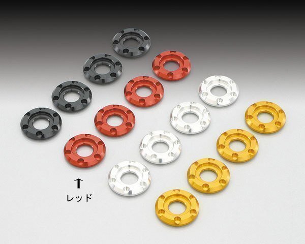商品内容 | ■リアショック取付部のワッシャーと交換するだけのお手軽ドレスアップアイテム。 ■アルミ削り出し/アルマイト仕上げ ■4ヶ1SET ■カラー : レッド ※モンキー、ゴリラ、モンキー(FI)、スーパーカブ50、リトルカブ等のツインショック車で、取付ナットがM10/対辺14mmサイズ( フランジナットを除く )使用の車両に限ります。 ■JANコード : 4990852082858 |