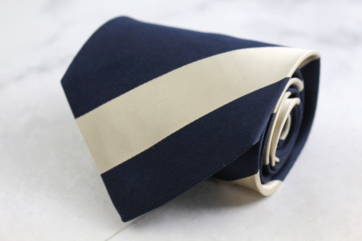 - ヨウジヤマモト ブランドネクタイ ストライプ柄 ダブルストライプ シルク PO メンズ ネイビー Yohji Yamamoto