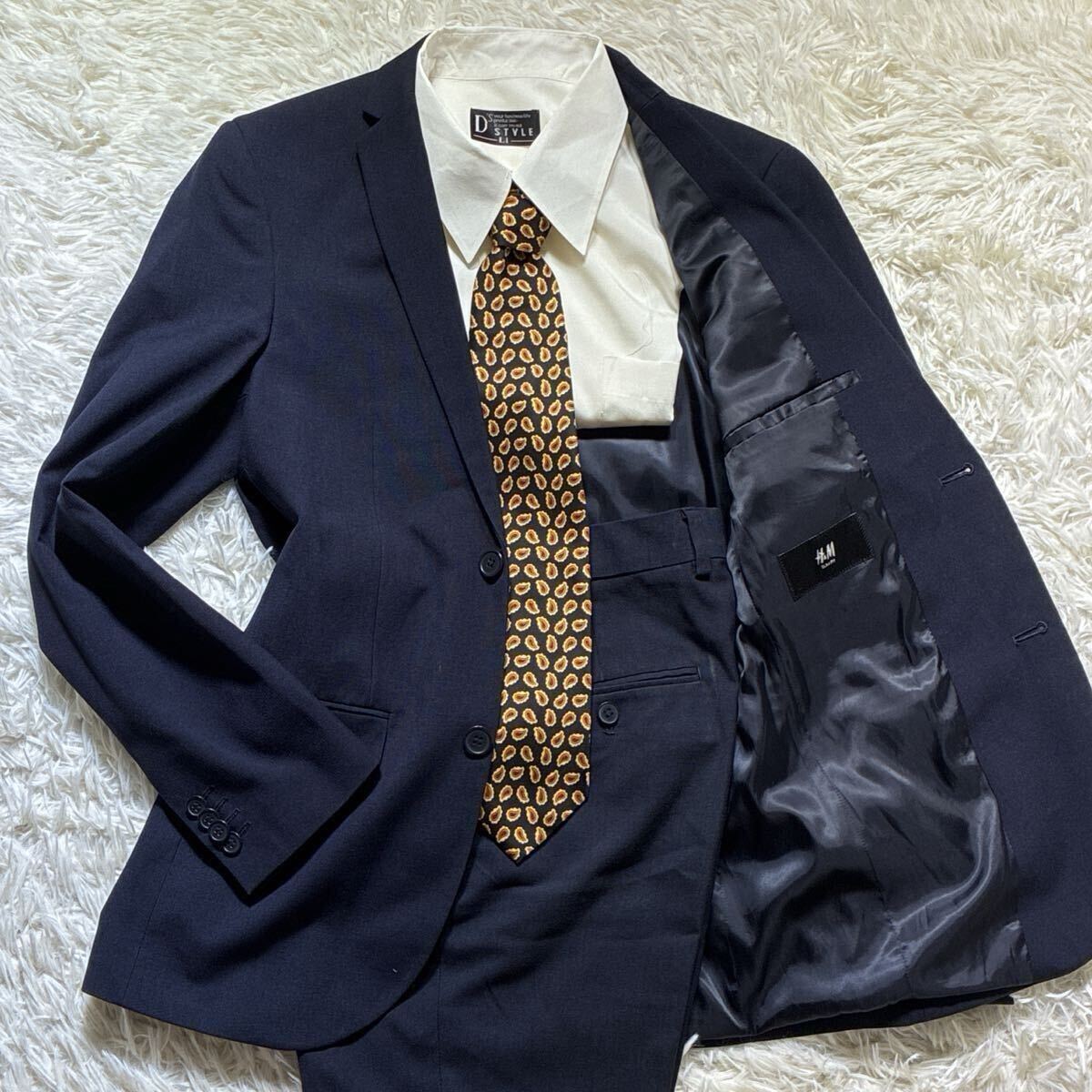 - 美品◎H&M エイチアンドエム スーツ セットアップ 紺 ネイビー 44/S サイドベンツ メンズ 紳士服 ビジネス カジュアル